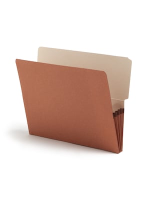 Keep letter-size documents protected and accessible with these file pockets. Featuring a 3.5-inch expansion capacity, these file holders are perfect for storing catalogs, thick files and other letter-size documents. The 4-inch reinforced top-position tabs are perfect for adding highly visible labels so you can easily identify and locate files. Made from sturdy redrope stock with manila liners, these Smead end-tab file pockets are durable for long-term storage and daily handling.