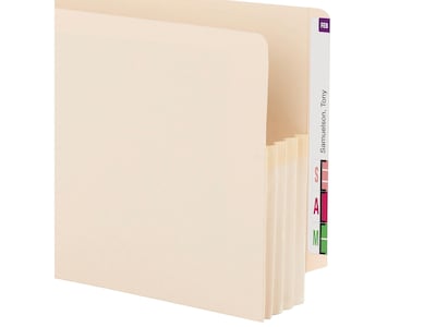 Archive contracts, statements and other documents with these end tab file pockets. With a 3.5-inch expansion capacity, these pockets offer plenty of room for multiple files, while the reinforced gussets prevent tears, providing enhanced durability for repeated filing. These Smead letter-size reinforced straight-cut tab manila file pockets come in a box of 25, so you can take on big filing projects easily.