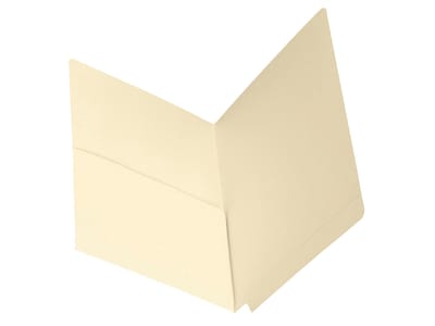 Tuck documents neatly away in these Smead Shelf-Master reinforced straight-cut tab one-pocket letter-size manila end-tab pocket folders.