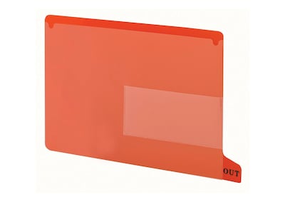 Put files back where they belong with these two-pocket letter-size red poly out guides. The poly construction provides durability, while the red hue makes these guides ideal for color-coding. These Smead poly out guides have two pockets for holding a checkout log and temporarily storing documents that need to be inserted into file folders once they're returned.