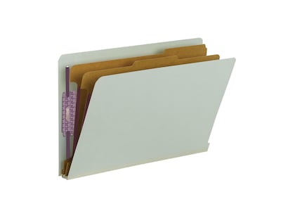 Organize and subdivide complex files with this 10-pack of Smead gray/green pressboard legal-size 2-inch expansion end-tab classification SafeSHIELD fastener file folders.