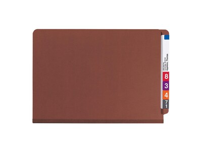Smead 50% Recycled End Tab Pressboard Classification Folders, Legal Size, 2 Dividers, Red, 10/Box