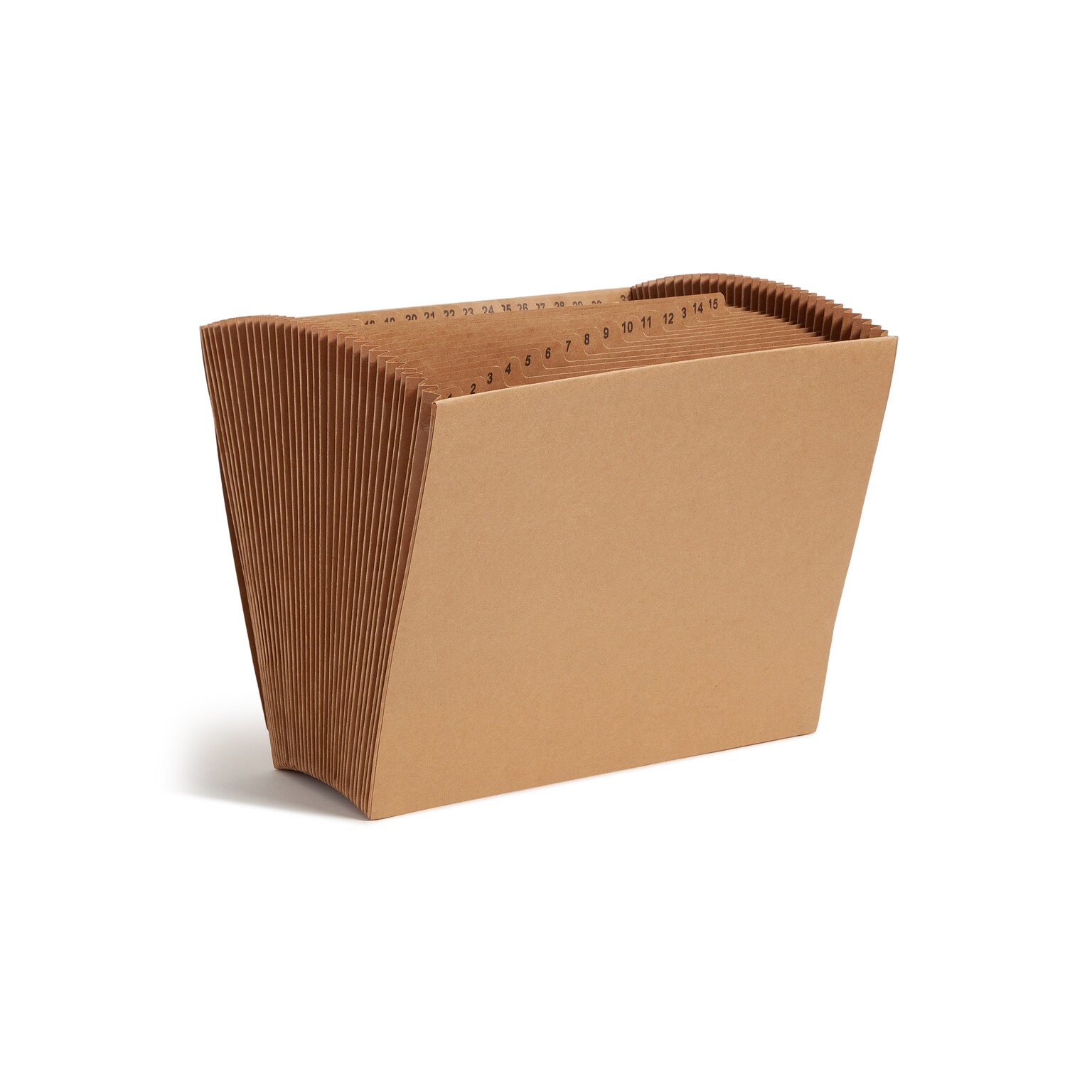 Store the day's receipts, invoices, forms and other important documents with this letter-size brown expanding file. With preprinted tabs numbered 1-31, this file is made of durable kraft paper with poly tape reinforced gussets to hold a month's worth of paperwork reliably. A protective flap with an elastic cord closure adds another layer of protection to this Smead expanding file for transporting materials securely.