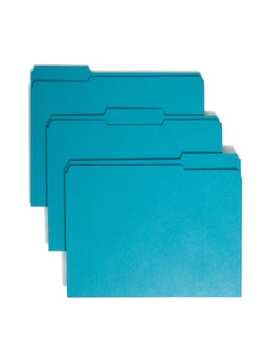 Smead File Folder, 3 Tab, Letter Size, Teal, 100/Box (13134)