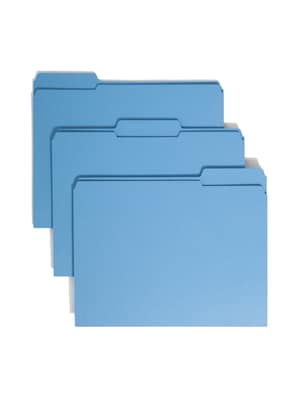 Organize files by color with these Smead blue reinforced 1/3-cut tab letter-size file folders.