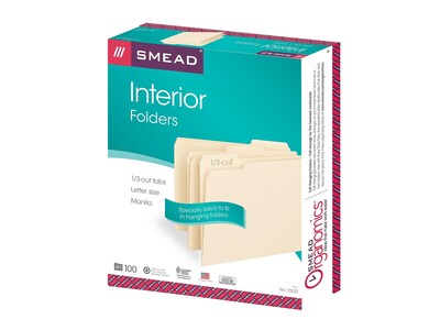 Smead File Folders, 1/3-Cut Tab, Letter Size, Manila, 100/Box (10332)