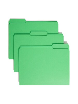 Improve your filing system with this box of 100 Smead letter-size 1/3-cut-tab reinforced green file folders.