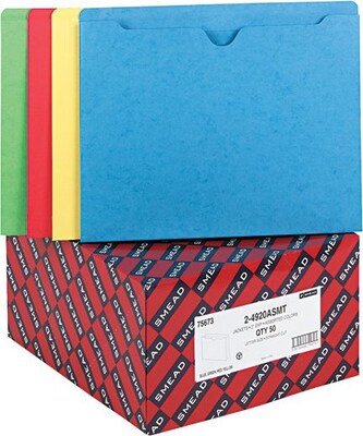 Smead 10% Recycled Reinforced File Jacket, 2" Expansion, Letter Size, Assorted, 50/Box (75673)