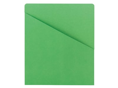 Organize documents easily with these slash jackets. Featuring a die cut, these slash jackets make a great choice for holding business cards and giving professional information high exposure, and the angled front makes it easy to view papers at a glance. These Smead green slash jackets come with 25 units per pack and are closed on three sides to keep papers from falling out.