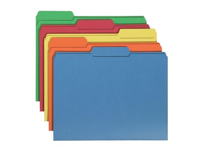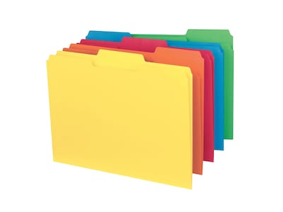 Create file subcategories for better document organization with these Smead letter-size interior file folders. The convenient size fits neatly into hanging file systems, while the 1/3-cut tabs are easy to spot when looking for documents. The assorted bright colors let you create a color-coding system for invoices, reports and forms within each hanging file. These Smead letter-size interior file folders feature 11-point stock construction for added durability.