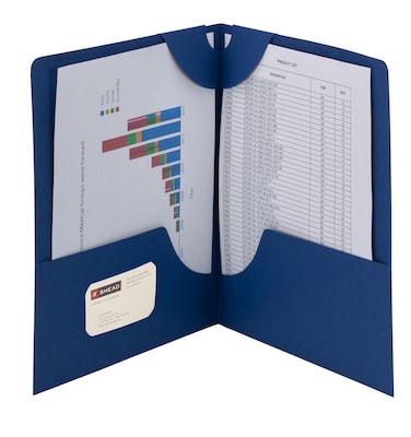 - Heavy-duty folders are made of blue card stock material in dark blue