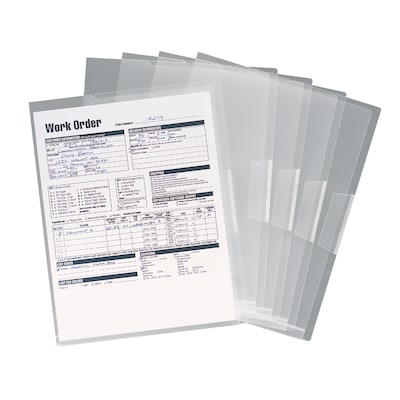 Protect important forms with these clear poly project file jackets. With a tuck-flap closure, these jackets offer enhanced security to work orders, invoices and other documents, while the durable poly material protects against moisture and tears. These Smead letter-size translucent project files are clear, so you can easily read papers without needing to remove them from the folder. See your papers at a glance with clear poly project jackets.