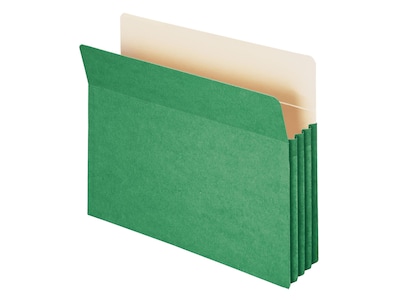 Color-code files easily with this green file pocket. This folder is made from 11-point stock for increased durability, and the tear resistant reinforced gussets provide enhanced strength at critical points. This Smead 3.5-inch expansion file pocket has a straight-cut tab, offering plenty of space for labeling, while the drop-front panel provides quick access to statements, forms and other paperwork.