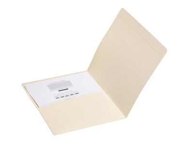 Protect and store documents with these Smead letter-size manila pocket folders. The straight-cut tabs provide ample space for labeling while also neatly aligning in cabinet drawers. Each tab boasts reinforced construction to withstand bending and tearing, and the interior pocket keeps documents securely stored inside. These Smead letter-size manila pocket folders feature sturdy 11-point stock construction for long-lasting durability.