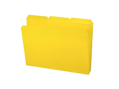 Prevent damage to contracts, invoices, and other documents by using these letter-size file folders. Made from sturdy poly material, these folders are tear-proof and water-resistant, providing enhanced durability and protection to files. These Smead 1/3-cut-tab poly file folders are an eye-grabbing bright yellow, so you can retrieve forms quickly, while the 1/3-cut assorted tabs offer convenient label viewing.