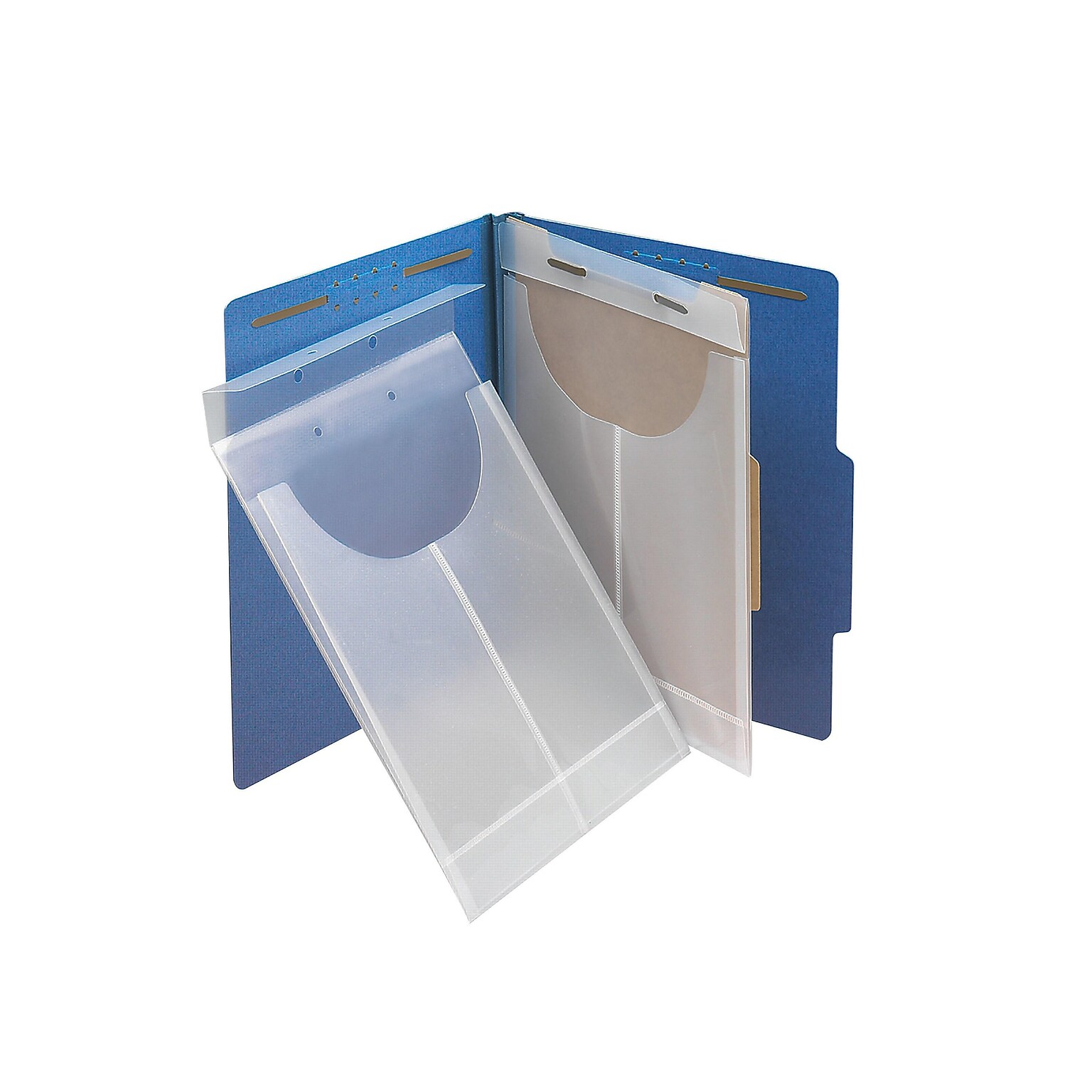 Add loose-leaf papers to fastener folders with these poly retention jackets. With an adjustable design, these retention jackets let you accommodate either letter or legal-size folders, while the 0.75-inch expansion and die-cut opening provide plenty of space to access documents quickly. These Smead poly retention jackets are transparent, making it easy to view contents without needing to pull them out.