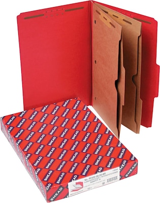 Smead Pressboard 2/5-Cut Tab Classification Folders, 6-Fasteners, 2 Pocket Partitions, Legal, Bright Red, 10/Box (19082)