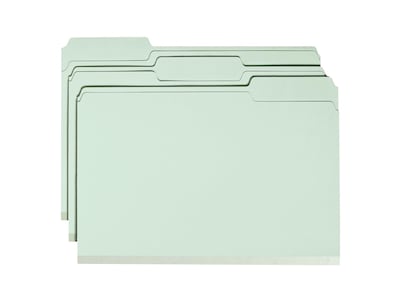 Organize large documents with this 25-pack of Smead SafeSHIELD fastener gray/green 1/3-cut tab 2-inch-expansion legal-size pressboard file folders.