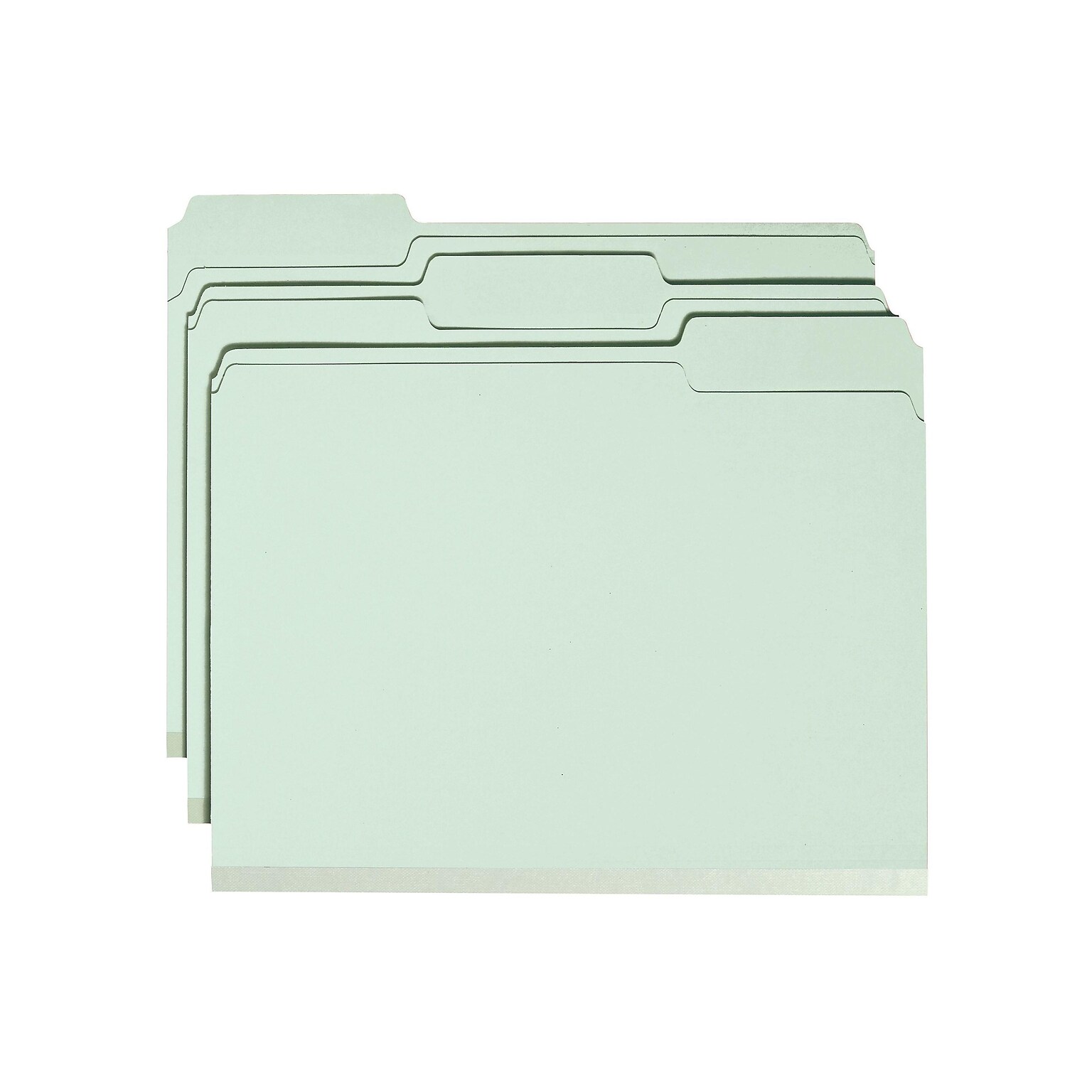 Store bulky file loads in these pressboard fastener file folders. The pressboard construction gives these folders durability, while the SafeSHIELD fasteners let you split documents into major categories. These Smead pressboard fastener file folders come in a pack of 25 and have 1/3-cut tabs that provide plenty of space for labels, making filing systems easier to browse.
