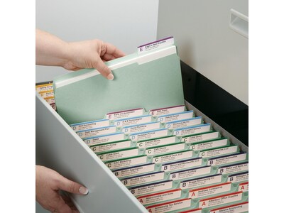 - Includes 25 letter size (11-3/4” W x 9-1/2” H overall, 9” H body) file folders, each with a 1/3-cut tab in assorted positions