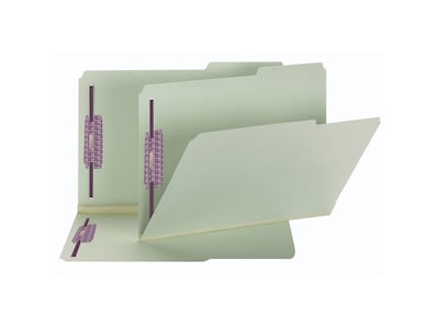 Subdivide and secure files with these Smead pressboard file folders. The SafeSHIELD coated fasteners help prevent paper rips, finger cuts and excessive crinkling while securing your documents, and each folder expands 2 inches to handle even the bulkiest files. These Smead pressboard file folders have a 2/5-cut design that provides plenty of room for labeling.