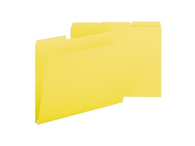 Archive important mortgage loans, invoices and other documents with these letter-size file folders. Constructed from 23-point pressboard and with a tear-resistant gusset, these folders stand up to repeated long-term use. These Smead 1-inch-expansion yellow file folders come with assorted 1/3-cut tabs, making it easy to view titles at a glance even when they are stored next to one another.