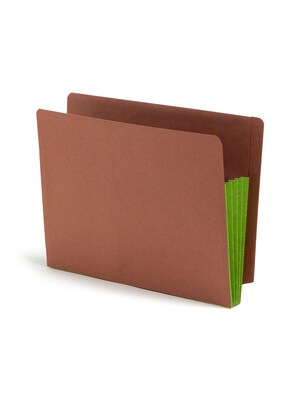 Smead Extra Wide Letter expansion file pocket in green color features straight cut reinforced end tabs and holds standard top tab folders without bulging, sold as 10 per box.