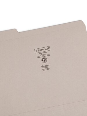 Smead Reinforced File Folder, 3 Tab, Letter Size, Gray, 100/Box (12334)