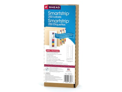 Smead Smartstrip ColorBar WaterGuard Inkjet File Folder Labels, 1 1/2" x 7 1/2", White, 250/Pack (66006)