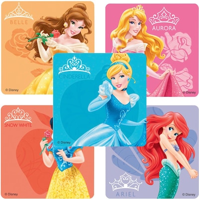 - Ariel, Belle, Snow White, Aurora and Cinderella are all represented in this Disney Princess sticker assortment.