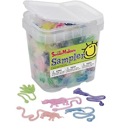 - Each reusable canister contains 190 individually wrapped sticky toys