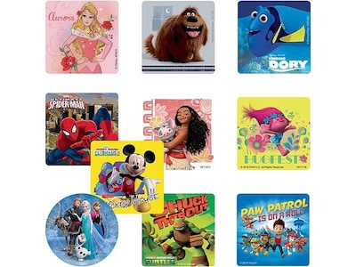 Give children a treat for doing their best with this sticker sampler. An assortment of popular characters from kids' movies and television shows makes these SmileMakers stickers a fun prize, and the small size fits perfectly on a coat or graded homework assignment.
