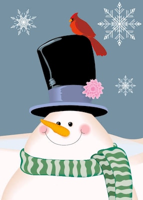 Snowman With Cardinal On Hat Holiday Greeting Cards, With A7 Envelopes, 7" x 5", 25 Cards per Set