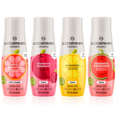 - Includes: (4) 14.9 SodaStream Classic Zero Calories Flavor Mix