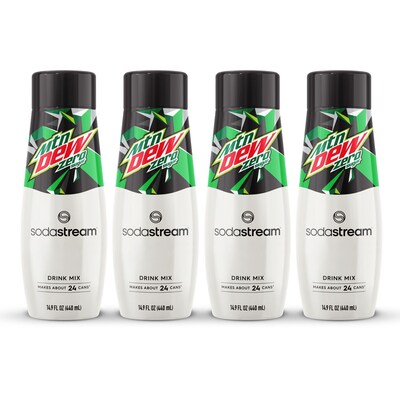 - Includes: (4) 14.9 SodaStream Mountain Dew Zero Sugar Drink Mix