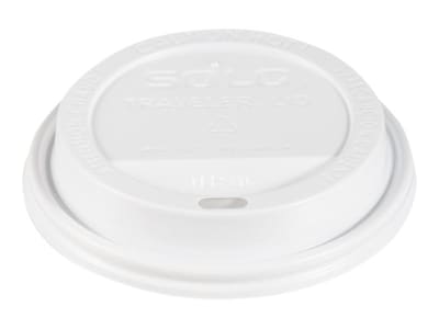 Keep drinks hot under a Solo Traveler paper hot cup lid.