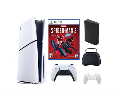 With Accessories, and Spiderman Game. The PS5 console unleashes new gaming possibilities that you never anticipated. Experience lightning fast loading with an ultra-high speed SSD, deeper immersion with support for haptic feedback, adaptive triggers, and 3D Audio2, and an all-new generation of incredible PlayStation games. *PS5 console (CFI-2000 model group - slim) 23D audio via built-in TV speakers or analog/USB stereo headphones. Set up and latest system software update required.
