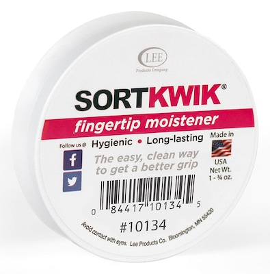 Count, collate, or sort papers or cash quickly and easily with this Lee Sortkwik fingertip moistener.