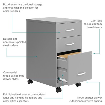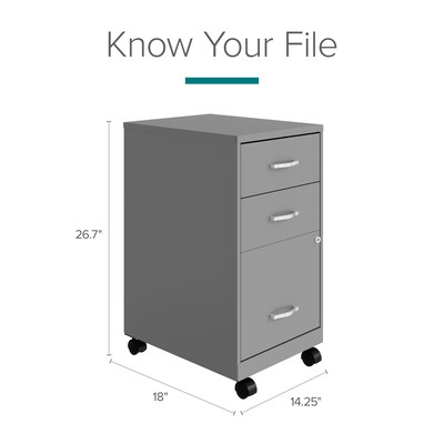 Space Solutions 18" 3-Drawer Mobile Letter Width Vertical File Cabinet, Arctic Silver (24429)