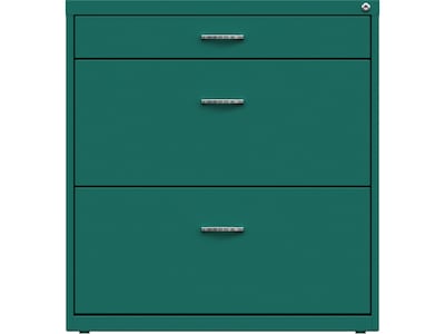 Space Solutions 3-Drawer Lateral File Cabinet, Letter/Legal Size, Lockable, 31.88"H x 30"W x 17.63"D, Teal (25074)