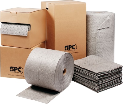 SPC® MRO Plus™ 20.5 gal Sorbent pad features three-ply construction for making it stronger, more durable and reduces lint. 15" x 19" Sorbent pad absorbs all industrial liquids and helps in hiding drips/spills, sold as 100 pads per carton.