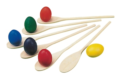 Spectrum™ Wooden eggs and spoons set comes with 6 brightly colored eggs and 6 spoons. Eggs and spoons set is tough enough for everyday use in the gym or on the playground and is great for training.