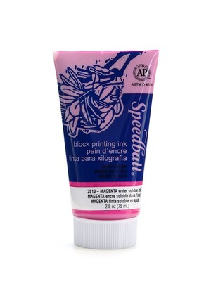 Speedball Water Soluble Block Printing Inks make printmaking fun and easy! They are easy to clean up with water and dry to a rich, satiny finish. The inks are ideal for use with all printing surfaces, including linoleum, wood, Flexible Printing Plate , and Speedy Stamp Blocks . The inks conform to ASTM D-4236. They-re excellent for studio, school, or home use. Speedball Water Soluble Block Printing Inks are available in 1.3 oz. and 2.5 oz. tubes, and 16 oz. jars. Now available in new Fluorescent Colors in 2.5 oz. tubes.