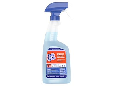 The Spic & Span disinfecting all-purpose cleaner spray and glass cleaner saves you time and money by harnessing the power of a professional-strength multipurpose cleaner, a brilliantly shining glass cleaner, and an EPA-registered hospital-use disinfectant(when used per label instructions) in one product. An effective disinfectant, the Spic & Span disinfecting all-purpose cleaner spray and glass cleaner kills SARS-CoV-2 on hard nonporous surfaces and kills influenza A virus in 2 minutes (2-minute claim not yet approved in CA). The Spic & Span disinfecting all-purpose cleaner spray and glass cleaner has a patented dual-solvent formula designed to dissolve greasy soils, provide an easy wipe-up, and then simply evaporate to leave your surface streak-free anddisinfected. For those environments where disinfecting is of the utmost importance, the cleaner's hospital-grade formula can be an effective solution.