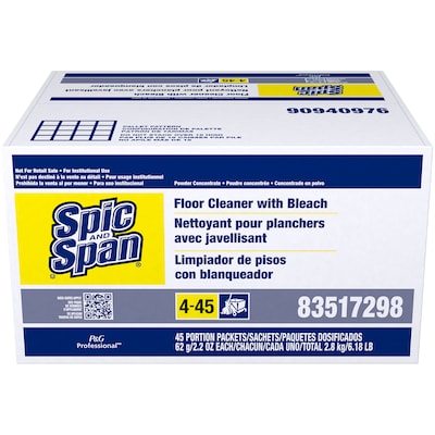 Spic and Span Floor cleaner packet with bleach features two-in-one cleaning that provides good sanitation and also saves time as well as labor. Floor cleaner packet is ideal for dust, soil and can be employed on linoleum, vinyl as well as wood.