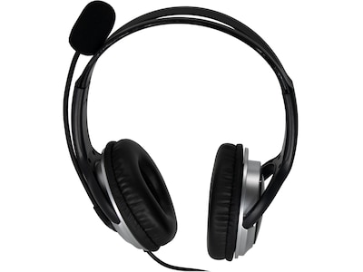 This Spracht headset provides noise cancellation for use in busy environments. Large leatherette-covered ear cushions mean comfort and durability. The mic boom is completely flexible, so you can adjust it for the best placement. The boom also rotates so that the mic and cord can be either on your right or left side. Designed for extensive use, the large speaker chambers cover most ear sizes comfortably. The in-line controller on the headset cord allows adjusting volume or muting the microphone or speakers.