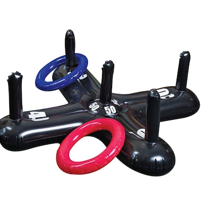 - Inflatable ring toss game features oversized PVC pieces