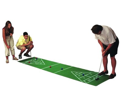 - This game combines the skill of putting with the classic fun of shuffleboard.
