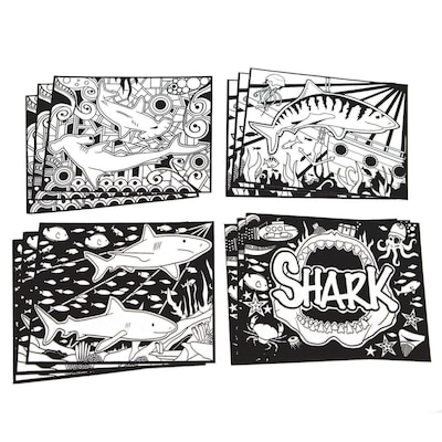Make it Shark Week every week with these exclusive coloring posters! Each cardstock picture measures 8” x 10”. Velvet borders make coloring a sure success! 3 each of 4 fun shark designs.