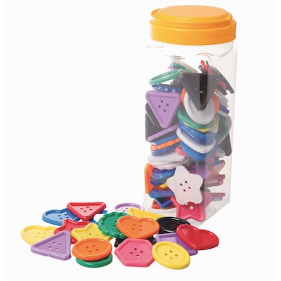 Colorful assortment of buttons in sizes 41mm to 50mm dia. Use for matching, sorting, patterning and creating sets. One pound pack contains approximately 90 pieces. Comes in convenient storage jar.